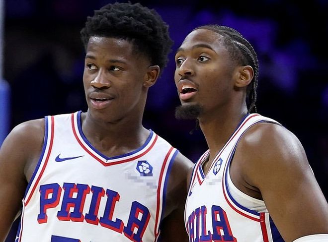 除了SGA+切特以及库里+巴特勒二人组之外,联盟还有多个二人组制造惊喜,让人叹为观止。比如费城76人队的马克西+小艾。乔治因伤高挂免战牌,大帝打打停停被时间管理,没人把这支76人当盘菜!可结果呢?76人开局豪取4连胜,领跑东部!在这个过程中,马克西和小艾二人组大放异彩!4场比赛下来,马克西场均爆砍37.5分(联盟第1)+3.8篮板+8.3助攻+1抢断+4.5记三分球,小艾场均贡献22.3分(新秀第1)+5.8篮板+5.5助攻+1.5抢断+3记三分球。据NBA官网数据统计,当小马和小艾同时在场时,76人每百回合能得到130.1分,排在联盟所有二人组第1。小马和小艾频频制造惊喜让人眼前一亮,可NBA最惊喜二人组却非文班+哈珀莫属!
